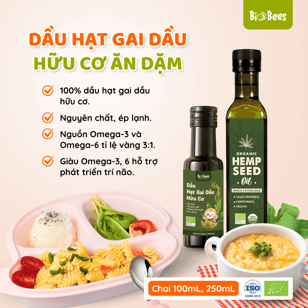 Dầu hạt gai dầu hữu cơ Bio Bees được ép lạnh 100% từ hạt gai dầu nguyên chất, canh tác theo phương pháp hữu cơ chuẩn châu Âu, không thuốc trừ sâu, không chất bảo quản – giữ trọn vẹn giá trị dinh dưỡng quý giá từ thiên nhiên.
